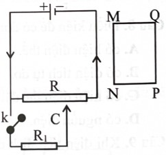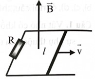 Đoạn văn 4: Trong mỗi ý a), b), c), d), ở mỗi câu, thí sinh chọn đúng hoặc sai. Hai thanh ray có điện trở không đáng kể được ghép song song với nhau, cách nhau một khoảng l trên mặt phẳng nằm ngang. Hai đầu của hai thanh được nối với nhau bằng điện trở R. Một thanh kim loại có chiều dài cũng bằng l, khối lượng m, điện trở r được đặt vuông góc và tiếp xúc với hai thanh. Hệ thống đặt trong một từ trường đều \(\vec B\) có phương thẳng đứng (hình vẽ). Kéo cho thanh chuyển động đều theo phương ngang với vận tốc v.