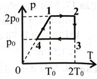 - Đoạn văn 3: Trong mỗi ý a), b), c), d), ở mỗi câu, thí sinh chọn đúng hoặc sai. Có 1 g khí Helium coi là khí lí tưởng, khối lượng mol là 4 g/mol, thực hiện một chu trình 1 – 2 – 3 – 4 – 1 được biểu diễn trên đồ thị p − T như hình vẽ. Cho p0 = 105 Pa, T0= 300 K.